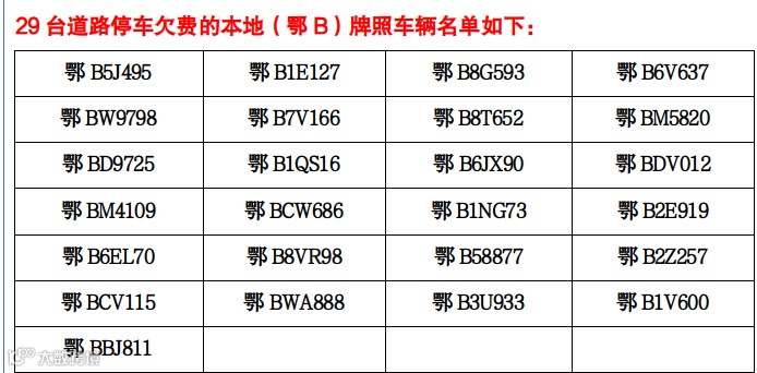 望以上车主于本告示发布之日起30日内缴清欠费,如再次在黄石城区路侧泊位停车时将会收到纸质版“停车欠费通知单”,如车主拒不理会,或将面临法律诉讼追缴。同时,恳请广大市民规范使用收费停车泊位,自觉缴纳停车费用!(如已补缴请忽略)