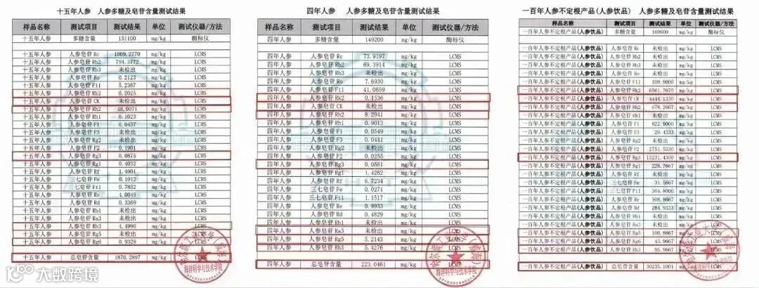经哈工大实验室数据显示,特等野山参干细胞产物的皂苷总含量是普通四年人参的136倍,Rh2、Rg3含量分别是普通四年人参的82倍、23万倍。