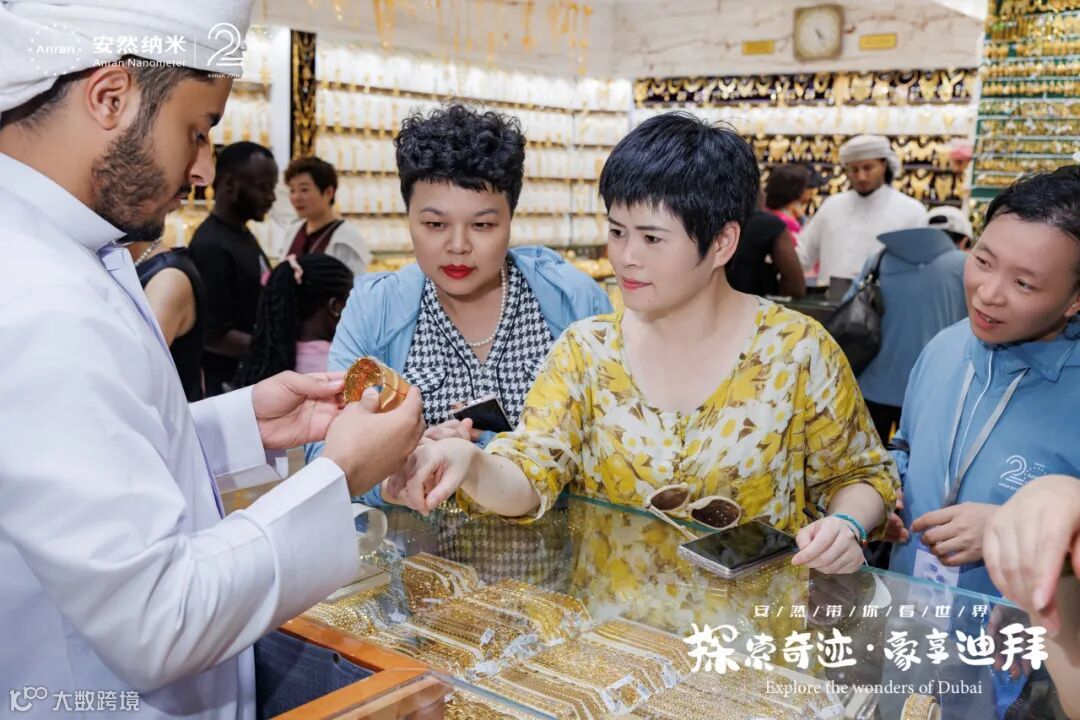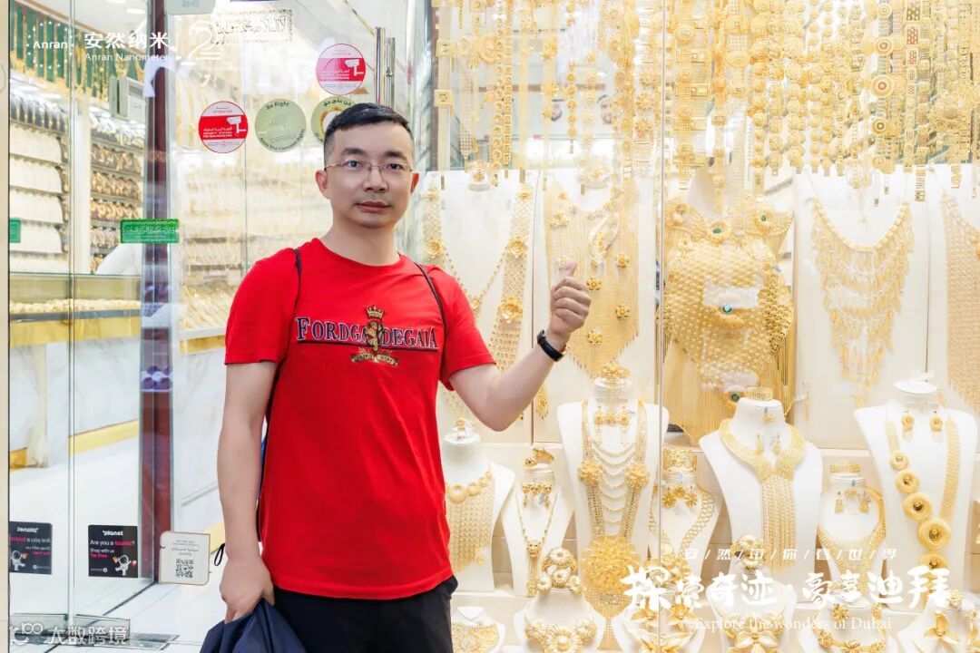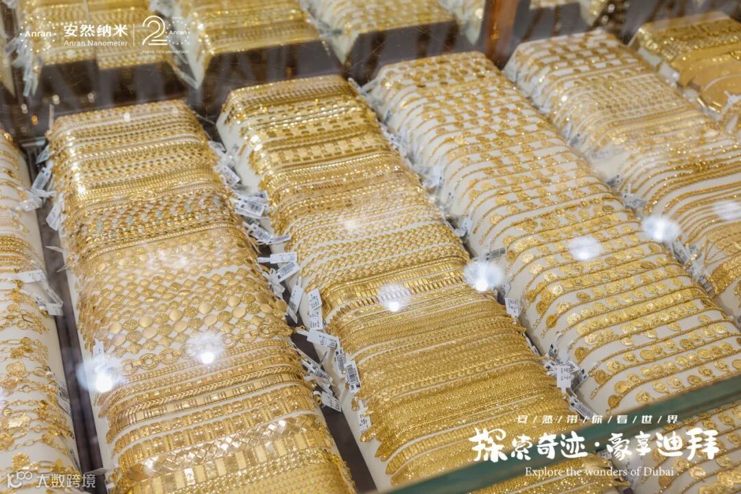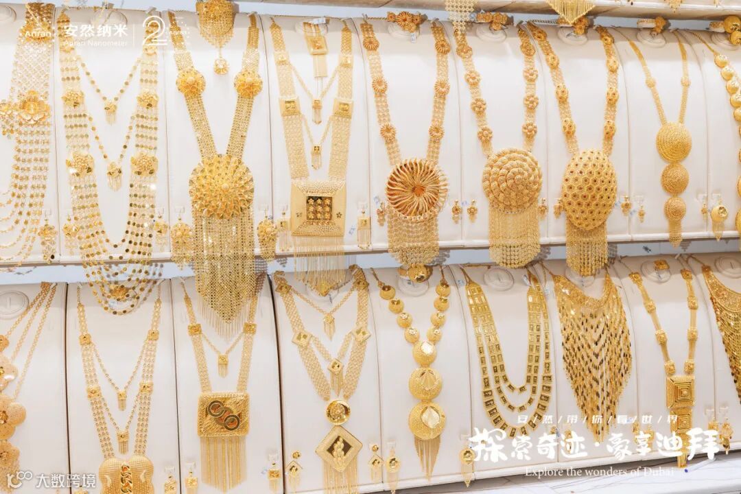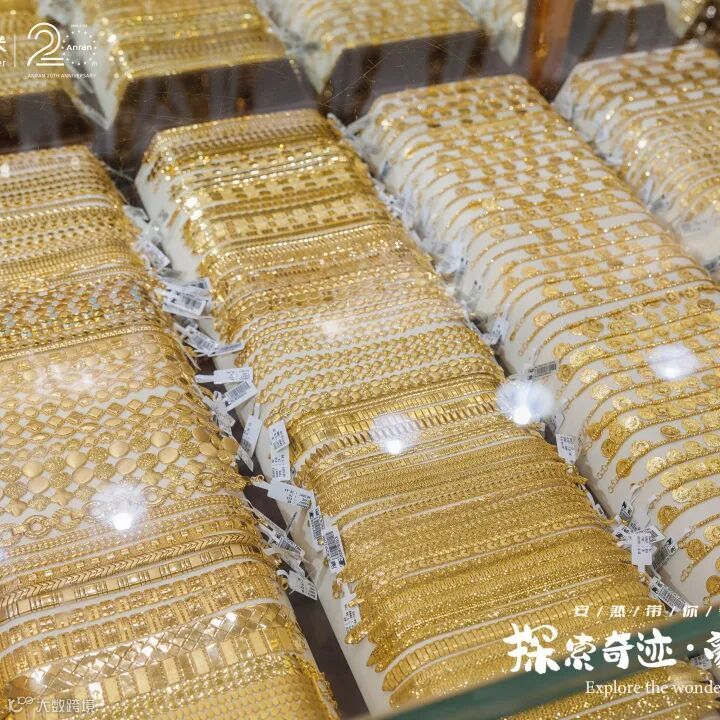 街道两侧都是闪耀着光芒的金店,每家店铺的橱窗里都挂满了手镯、项链、戒指,还有那些超大号的金饰品,让人眼花缭乱。