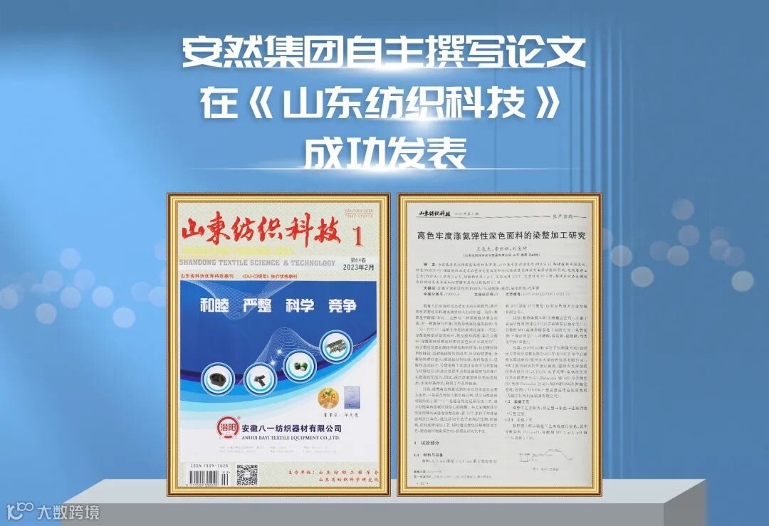 安然集团自主撰写论文《高色牢度涤氨弹性深色面料的染整加工》于2022年10月17日被《山东纺织科技》录用,2023年2月刊正式发表。