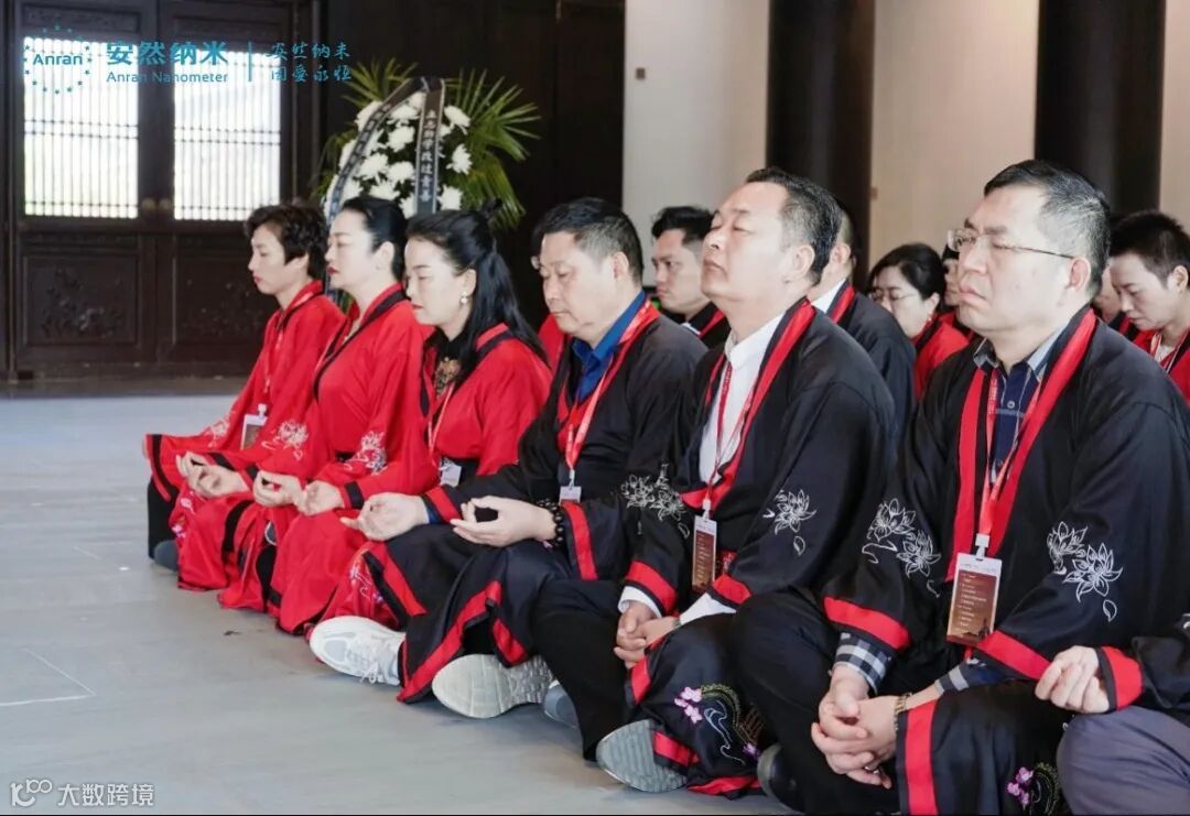 王文成公祠是修文纪念阳明先生的地方,也是龙场立志最好的地方。安然研究团家人们身穿汉服,向阳明先生行三鞠躬礼,全体家人们手持鲜花,默立致敬圣贤。