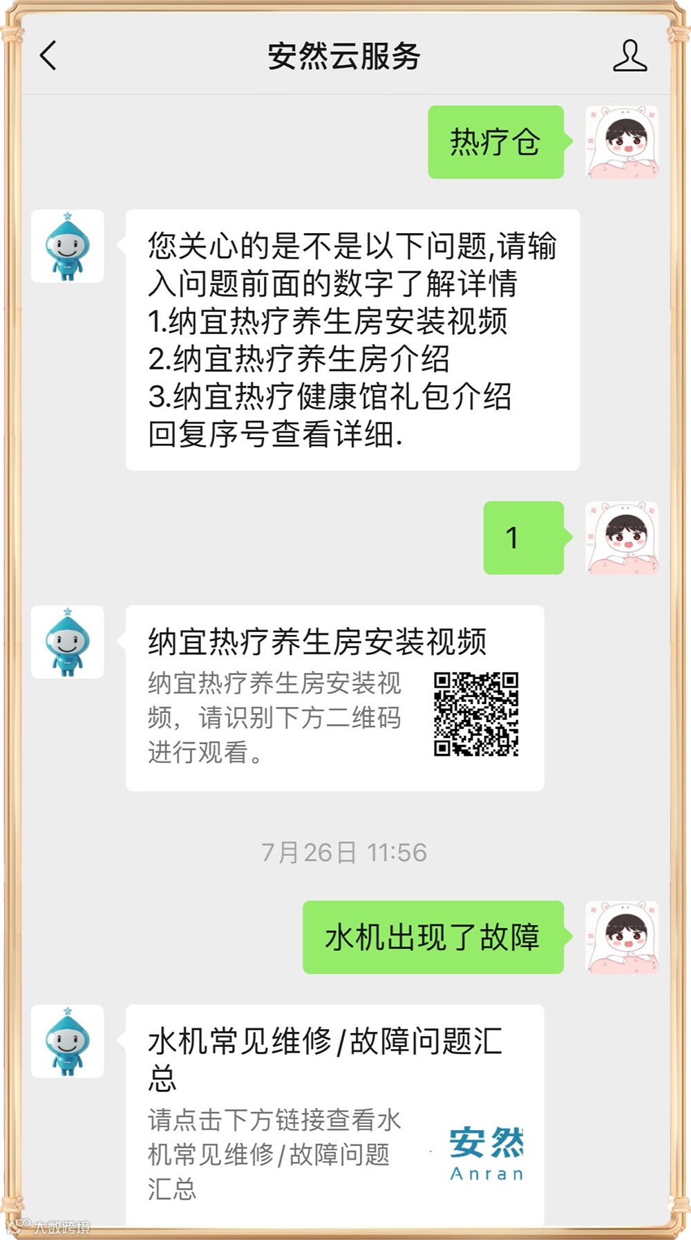 关注安然云服务公众号,在微信页面输入想要咨询的内容并按照提示操作,即可获得回复哦~