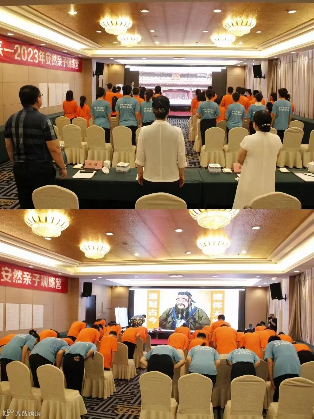 伴随着升国旗、唱国歌、尊孔礼的进行,本次亲子训练营开营仪式正式开始。