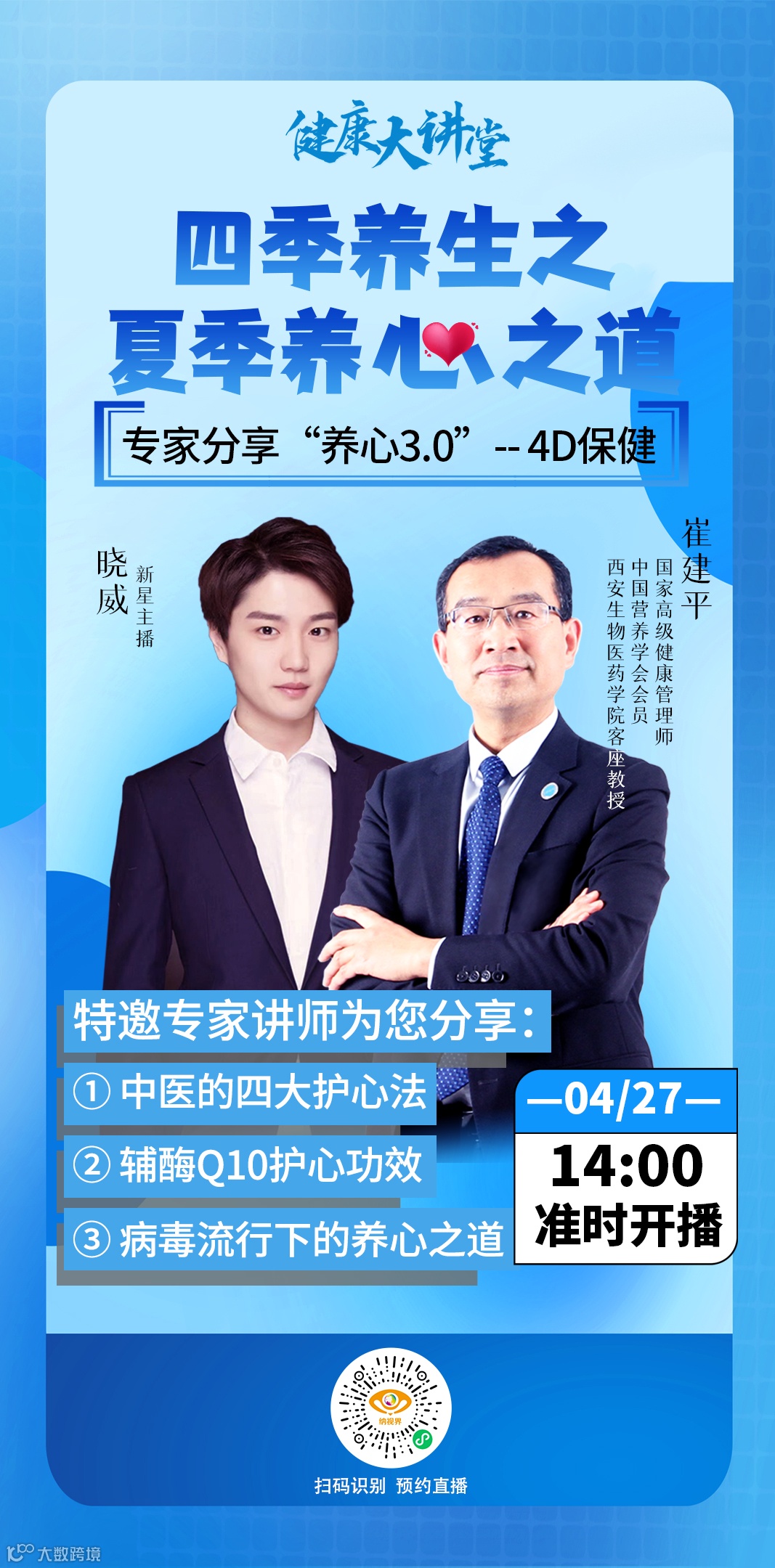4月27日14:00准时开播,分享夏季养心之道!