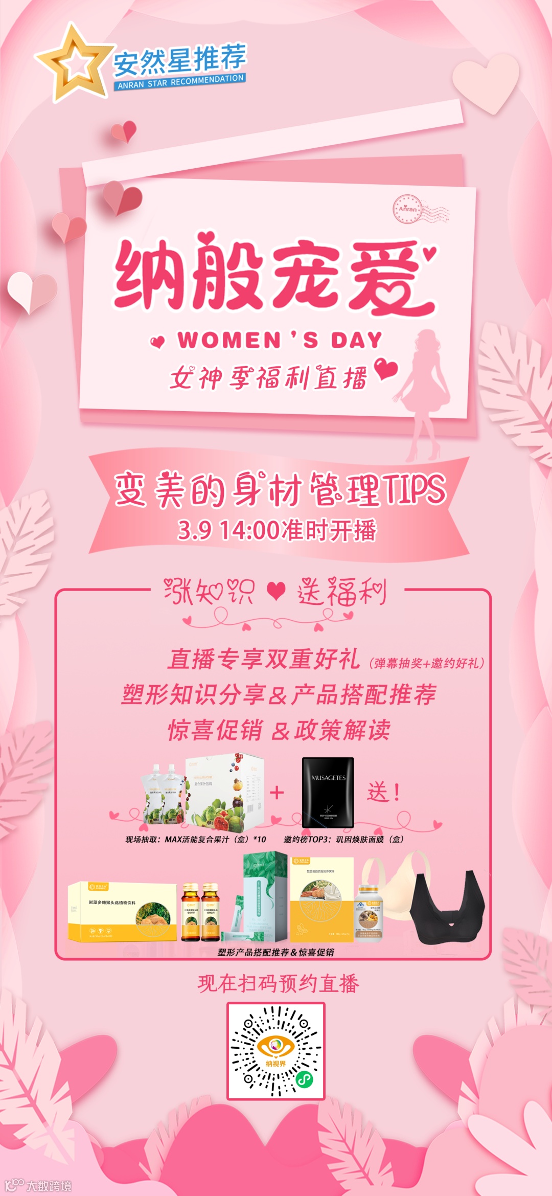 本期“纳般宠爱”女神季专场直播,我们邀请了惊喜的新面孔主播来到直播间,担当安然星荐官,为您献上“身材管理”锦囊和产品搭配推荐,助您美丽有型!