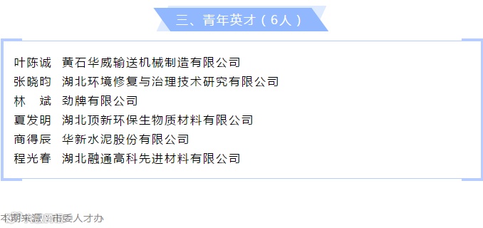 据介绍,这19人中近五年内来黄创新创业的“新黄石人”多达11人,均为企业科技研发创新一线工作的技术带头人、技术骨干或从技术研发岗位成长起来的技术管理人才。