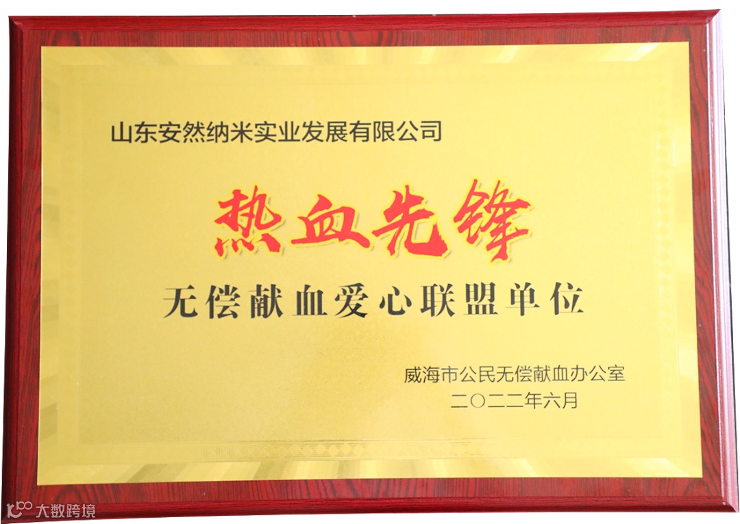 活动现场,威海市中心血站副站长戚晓东先生代表威海市中心血站为安然公司颁发“热血先锋无偿献血爱心联盟单位”荣誉称号。
