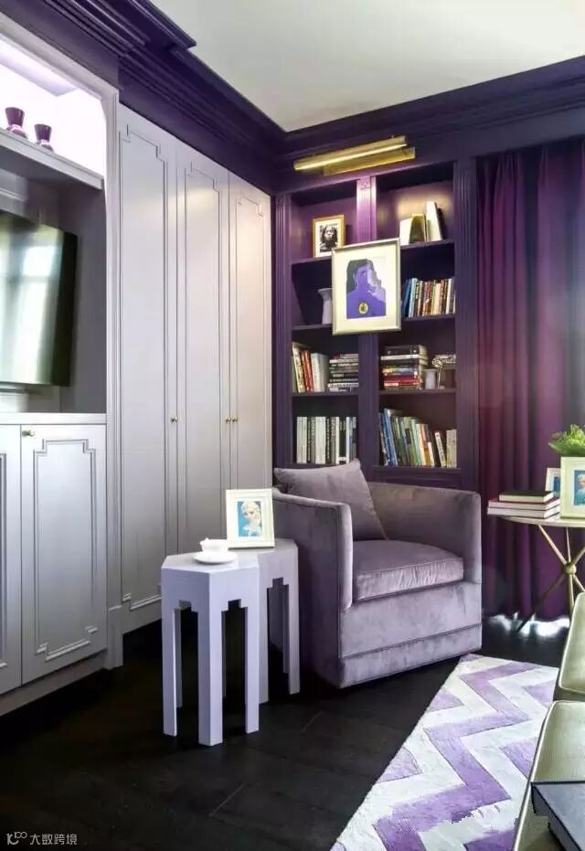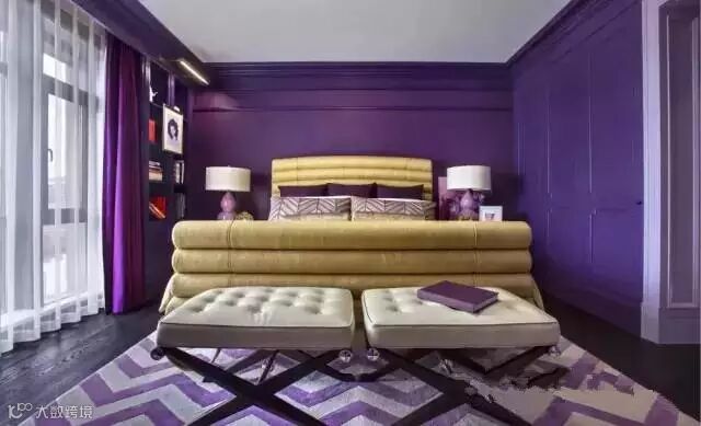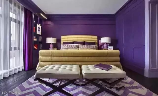 他如同一个善用色彩炼金的术士,用心调和着各种色调,在浓淡不同中,令空间呈现活色生香且有高贵典雅的迷人气质。二楼东边卧室以紫色作为主色调,搭配着金色的皇帝床,不经意的呈现了浪漫的造梦空间。