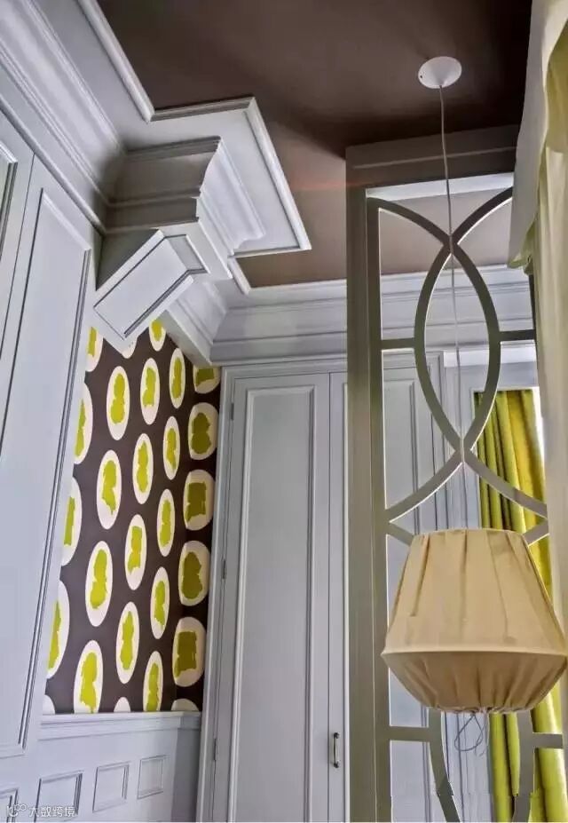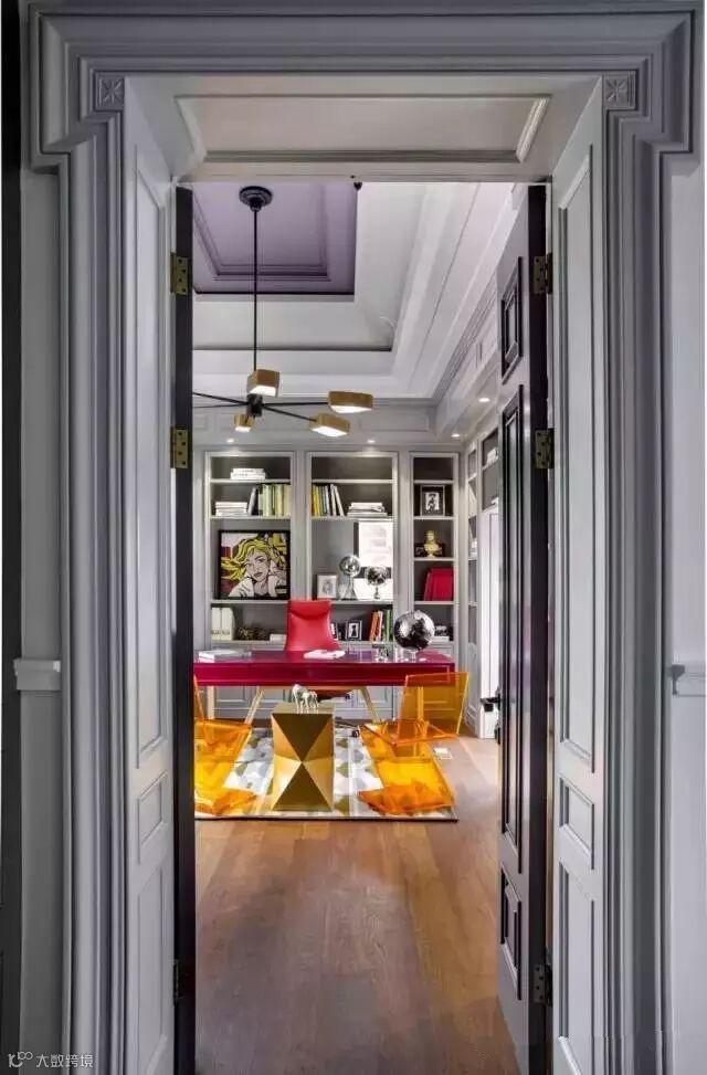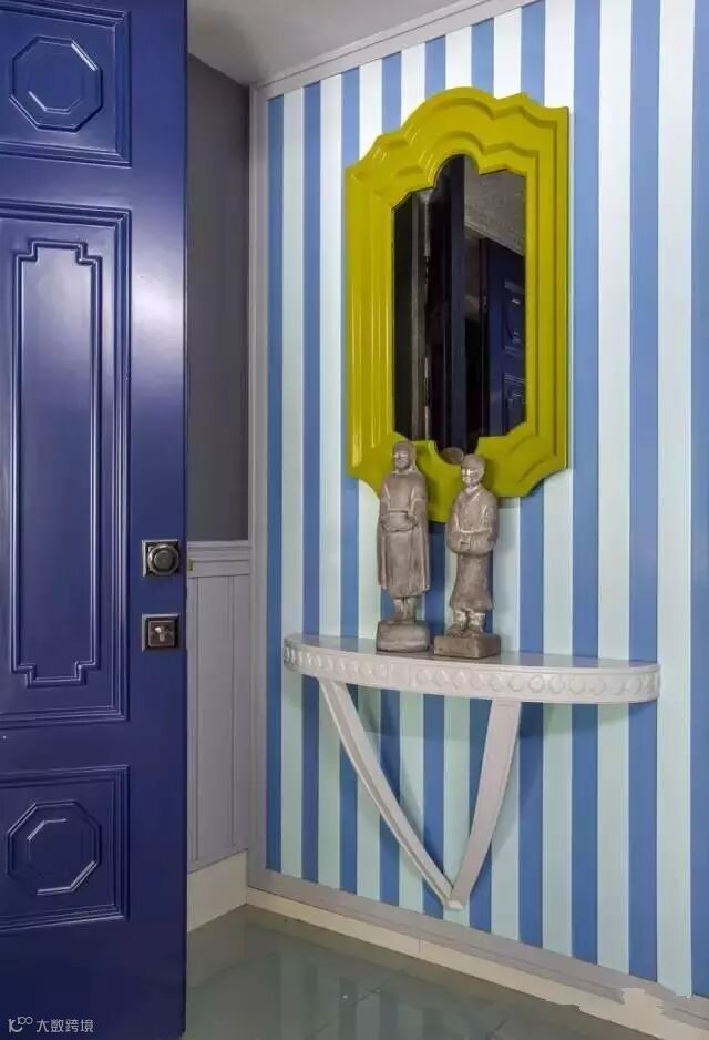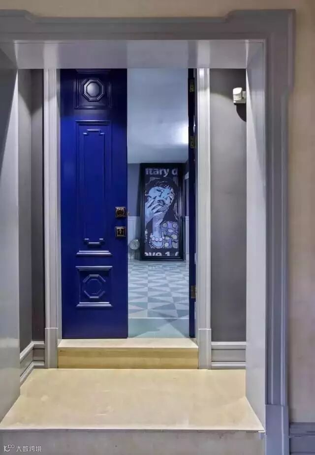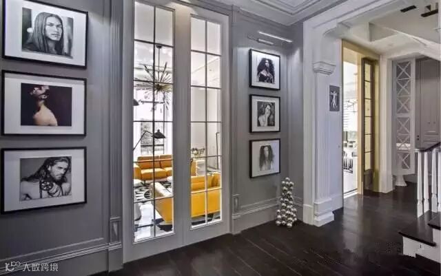 一进门你会被浓浓的艺术氛围所吸引,门厅背景墙上男士外型模样的抽象派饰物就奠定了这个房间的格调,时尚感极强,搭配护墙板的灰色很是默契,与之应景的是白色的门套与线条,相互穿插谁也抢不了谁的风头,包容又足以眼前一亮。精美的门扉,将原本平淡的墙体无限的拉向远方,仿佛既在门里又在门外。