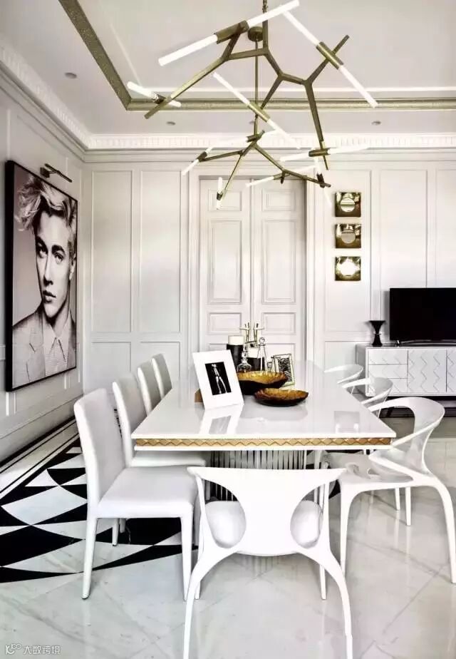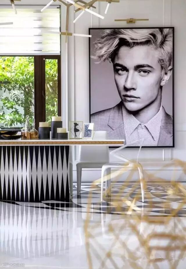 餐厅边上挂着一幅年仅16岁超级模特Lucky blue smith的肖像,精致有趣的细节不但弥补了视觉的单调,还给这个空间的添了几分年轻活跃的气氛。