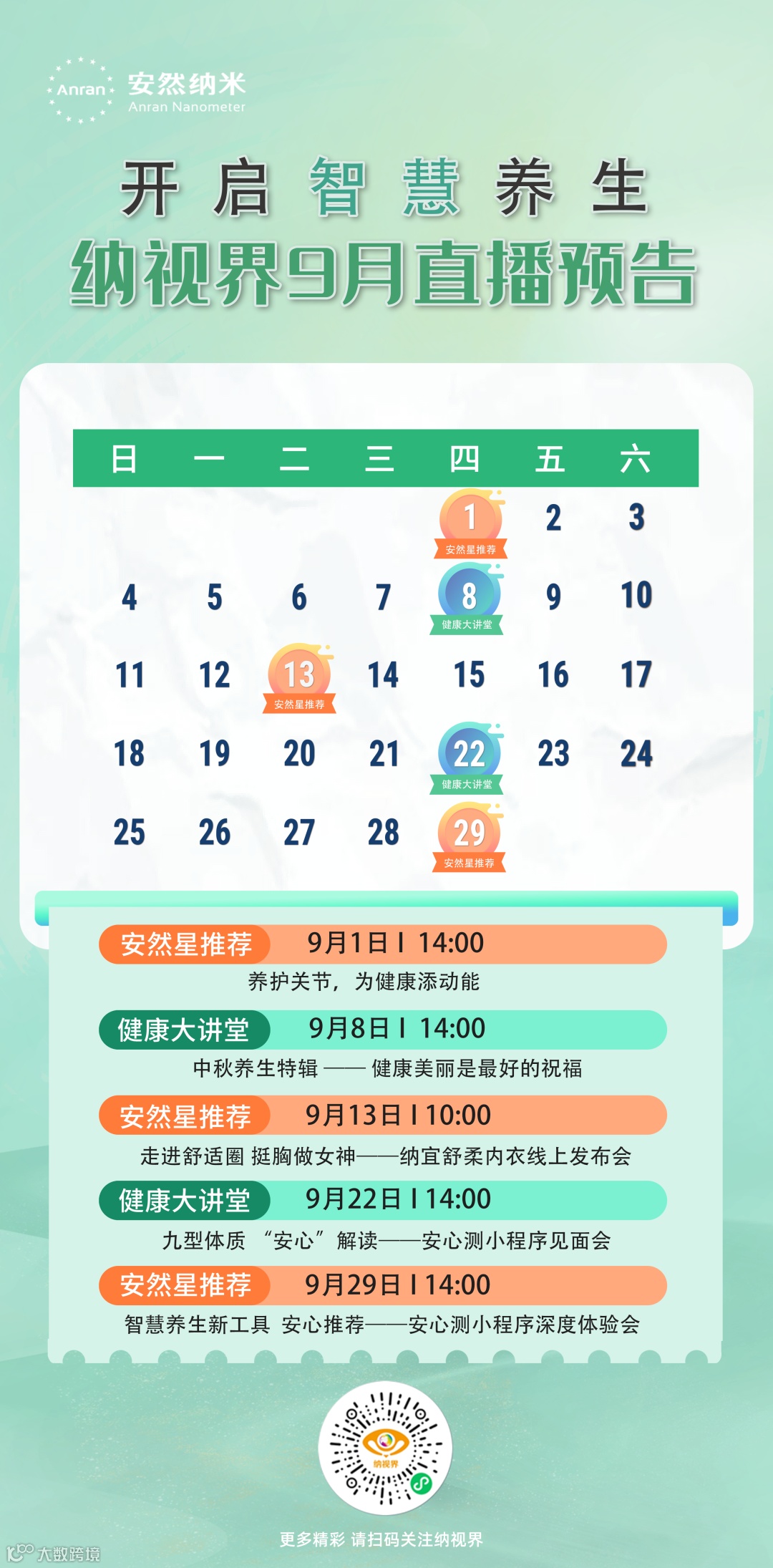 开启智慧养生——纳视界9月直播日程表送上!