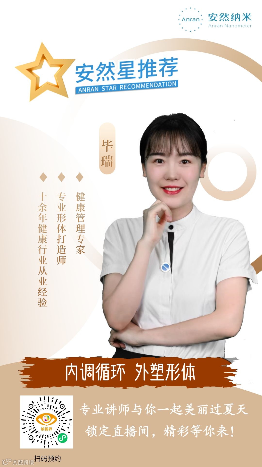 将由健康管理专家、专业形体打造师、拥有十余年健康行业从业经验的毕瑞老师,担任本期星荐官