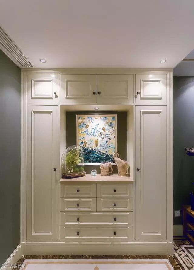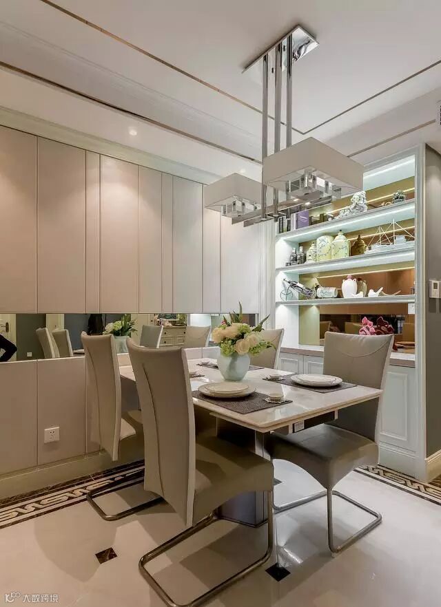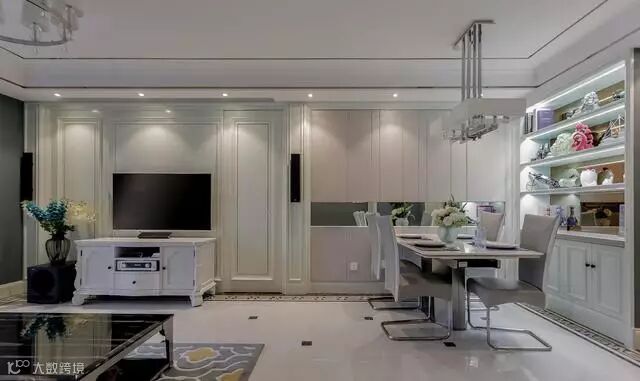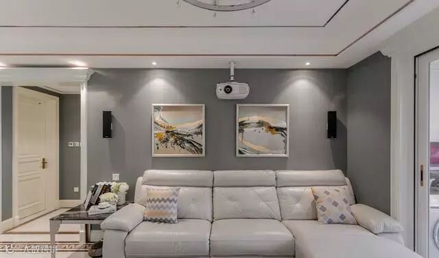 白色皮质沙发加灰色背景墙的设定也是简约高贵