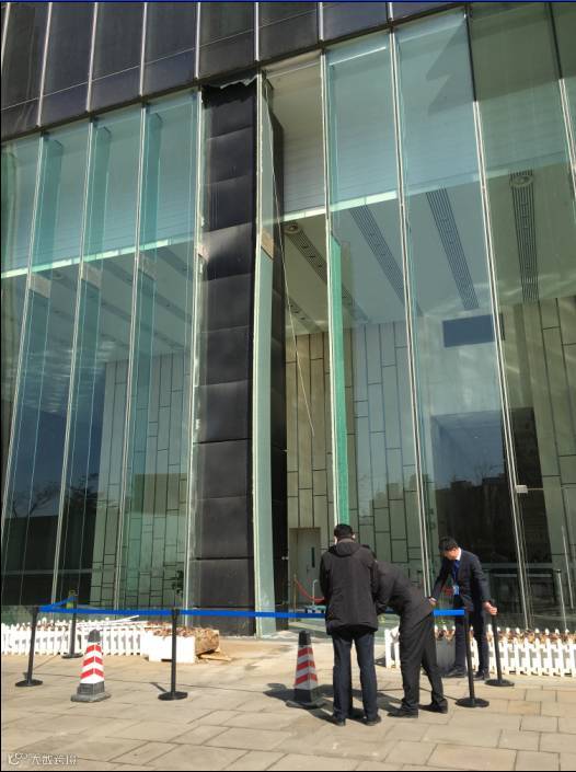 据阎先生介绍,大厦的楼体是玻璃幕墙结构,底层每块玻璃高度约6米,宽度约1米,宝马车当场就撞碎了两块玻璃,破碎的玻璃碎片掉落一地,现场一片狼藉,旁边还有两块玻璃也出现了不同程度的裂纹。此次事故,总共导致4块玻璃受损。