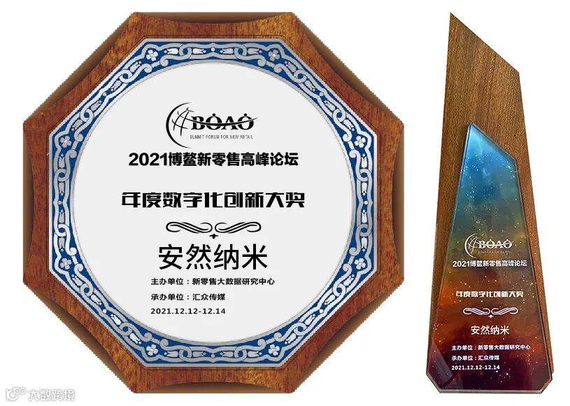安然公司荣获2021博鳌新零售高峰论坛“年度数字化创新大奖”。