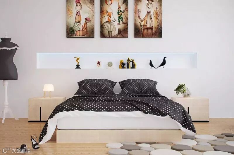 床头背景墙有种雕塑感的氛围