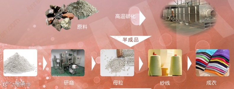 火山岩经过高温碳化、研磨成纳米粒度的粉体。将含有火山岩和气凝胶的粉体与腈纶载体通过高速剪切搅拌,混合均匀后制成纤维母粒,通过熔融纺丝制成纱线。