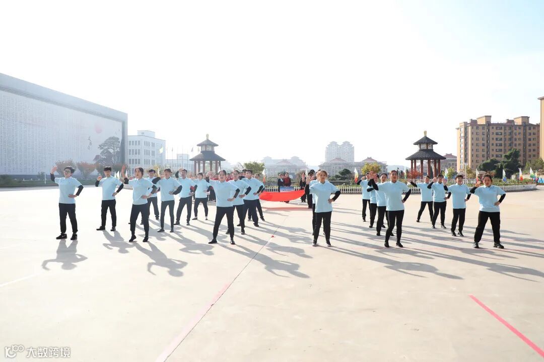 伴随着嘹亮的进行曲,入场式方阵统一着装、迈着矫健的步伐,喊着响亮的口号,昂首阔步依次走过主席台,展示手语舞和正能量新潮舞蹈,他们个个面带笑容,昂首阔步,心中涌动着激昂的斗志和必胜的决心。