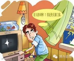 ④躲避不安全地区,特别是远离迎风门窗、受损的电力设施、树木、高空户外广告等;