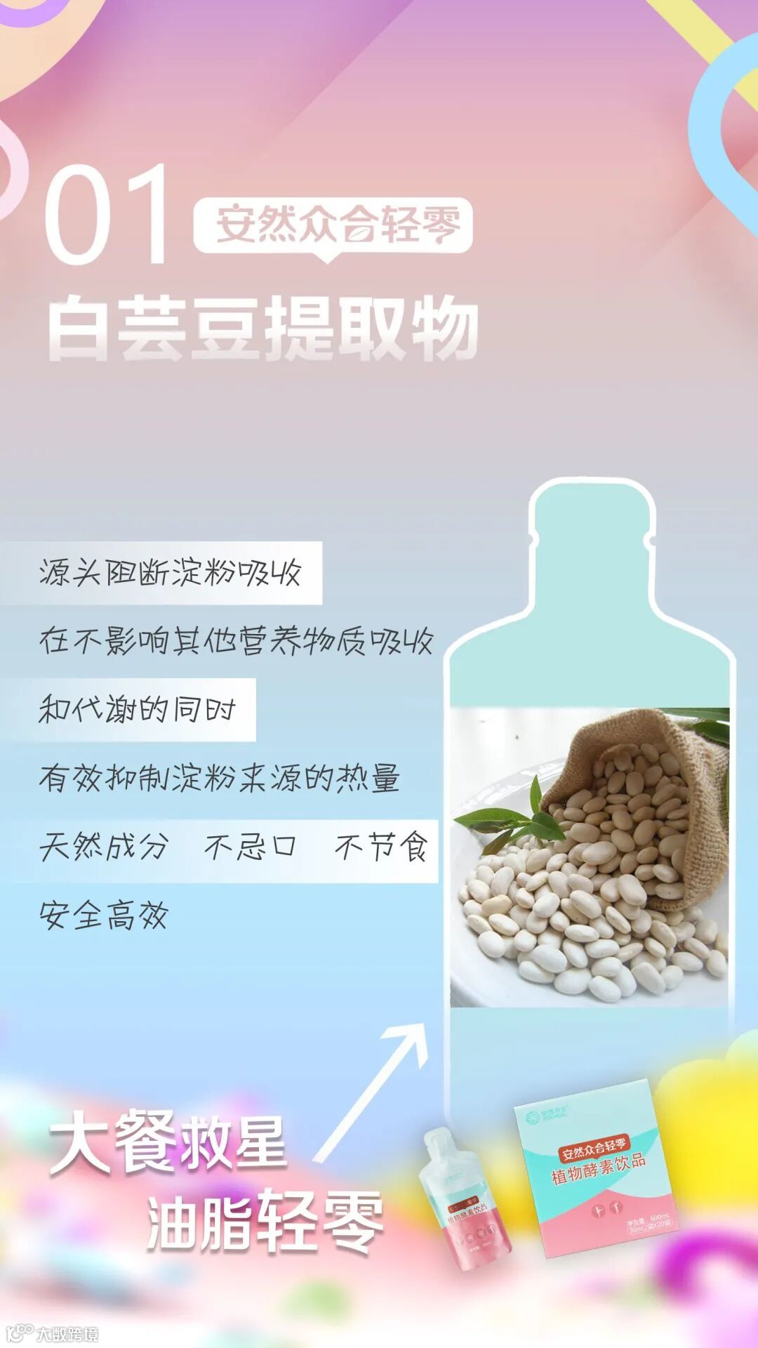 白芸豆提取物,是天然萃取自美国白芸豆的一种糖蛋白,学名“α-淀粉酶抑制蛋白”,能够抑制人体内淀粉酶活性,从而具有控制体重、降低餐后血糖功效的纯植物提取物。
