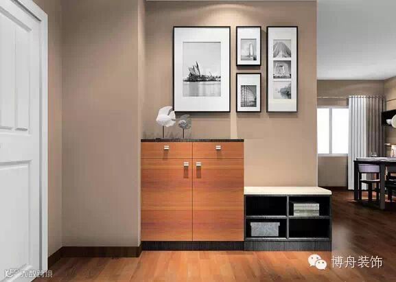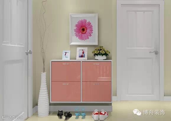 小户型的玄关要“充分发挥”。综合考量装饰性和实用性。这款鞋柜特别适合喜欢穿靴子的女生,再也不怕靴子变形了。