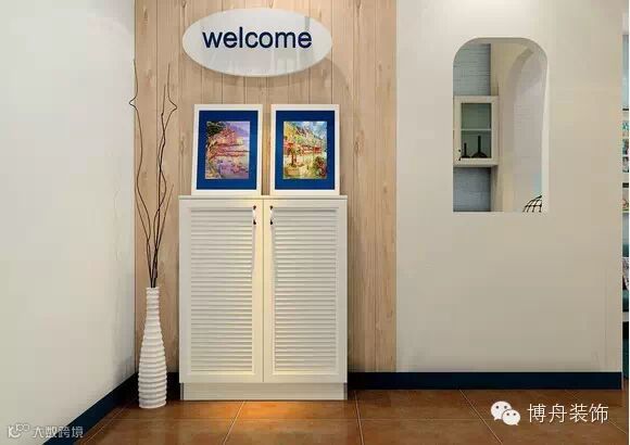 白色的鞋柜上摆放特别的装饰画,可以向客人展示主人的审美趣味哦。