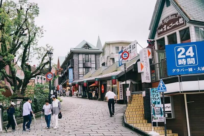 街区两边建有很多西洋式建筑物,为长崎重要的文化遗产,漫步在清洁如洗的青石板路上,边走边欣赏那一幢幢幽静别致,散落在山坡、海边、绿树丛中的19世纪欧美式的别墅住宅,错落有致,别具特色。