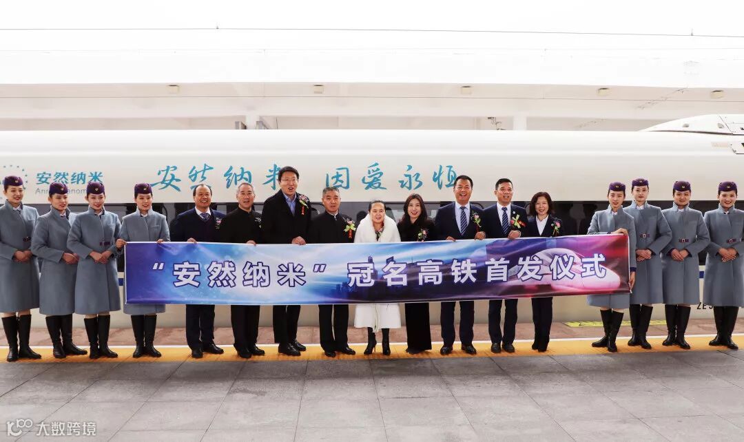 2019年12月25日圣诞节之时,“安然纳米号”高铁列车发车仪式在荣成高铁站盛大开启,安然公司董事长刘润东先生,副董事长、总裁梁浩女士携安然公司管理层团队,卓越市场领导人杨树才先生,华铁传媒集团有限公司副总裁宋平辉先生亲临现场,共同见证“安然纳米号”冠名高铁首发仪式的荣耀时刻。