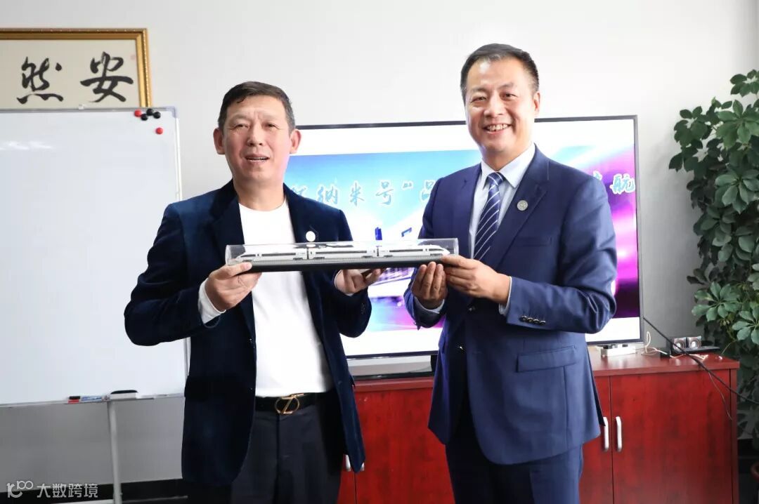 ▲直销中华区执行总裁陶剑俊先生向优秀市场领导人们赠送具有纪念意义的“安然纳米号”品牌专列模型