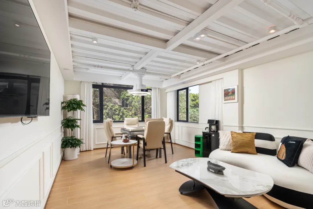 就连房间都标配高档沙发+大电视,落场休息可以叹叹茶、看看足球、电影,十分写意。