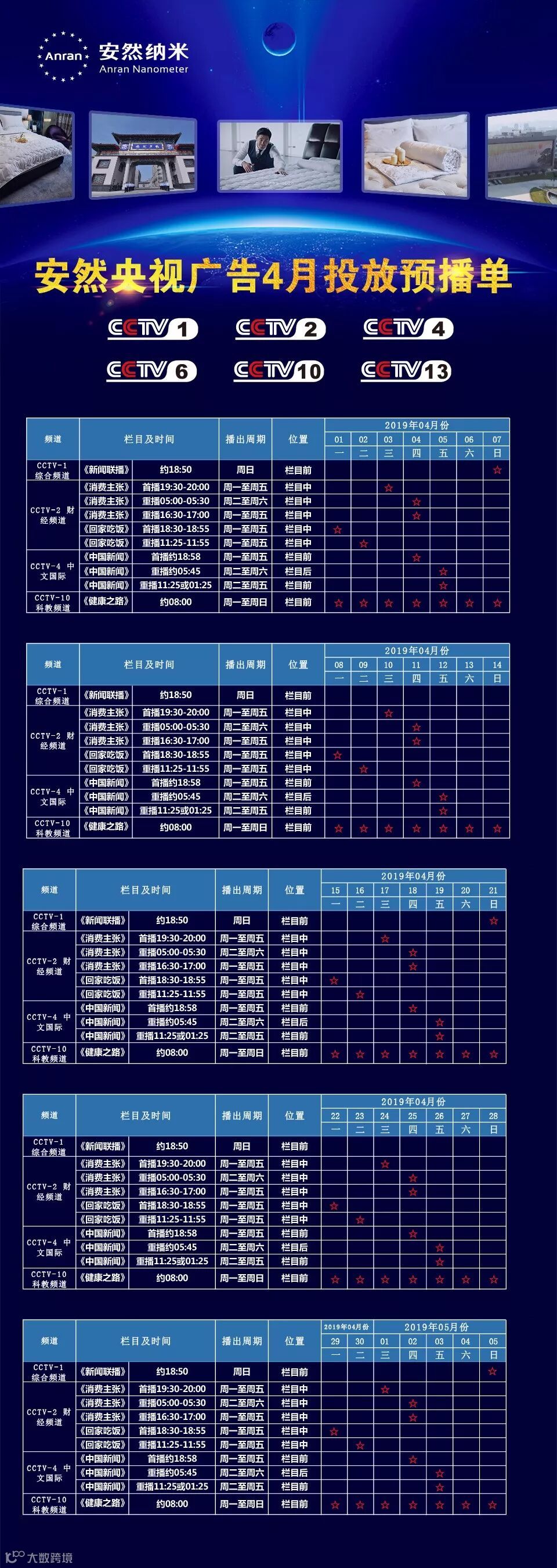 导读:安然纳宜床品广告强势登陆央视六大频道彰显安然实力!绽放品牌魅力!2019深耕年安然品牌建设继续发力 更多精彩