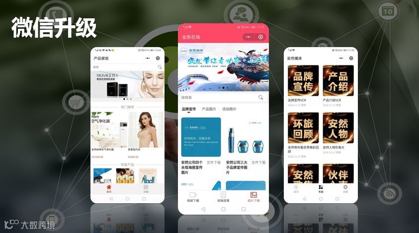 全面升级公司微信端。期望实现报单,订货,培训,引流、一键下载等功能。我们的目标是,只要一部手机,安然生意就可以全部搞定!