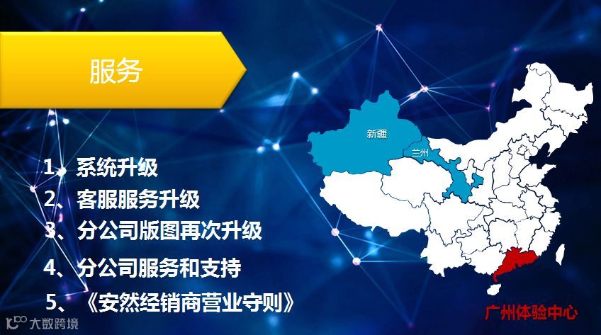 ●分公司版图再次升级。明年,我们将开设兰州分公司,升级新疆分公司,满足业绩倍增市场的发展需要。同时告诉大家一个振奋人心的好消息,公司再次祭出大手笔,花重金在直销大省广州开设安然第二家体验店。广州作为中国直销行业桥头堡,安然在这里的布局,必将书写世界大安然的新篇章。