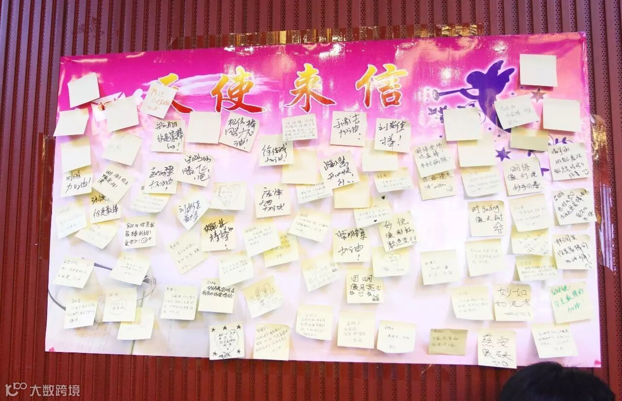 各位员工及孩子借助便利贴,在“天使来信”展板写上了对最想感谢的人的祝福话语。
