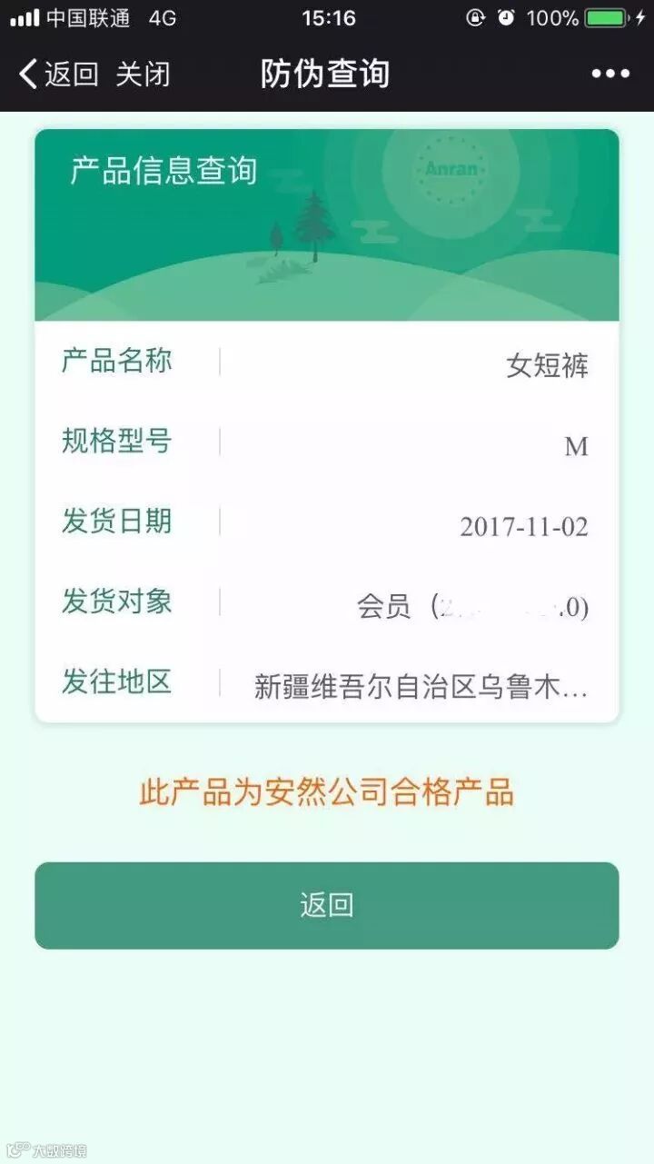 查真伪。在<安然云服务>公众号下方的“产品查询”,可以让您清楚的核对您手中宝贝的各类信息,以及防伪查询,输入订货时预留的手机号码,点击“提交”,宝贝的来龙去脉即可清晰呈现。