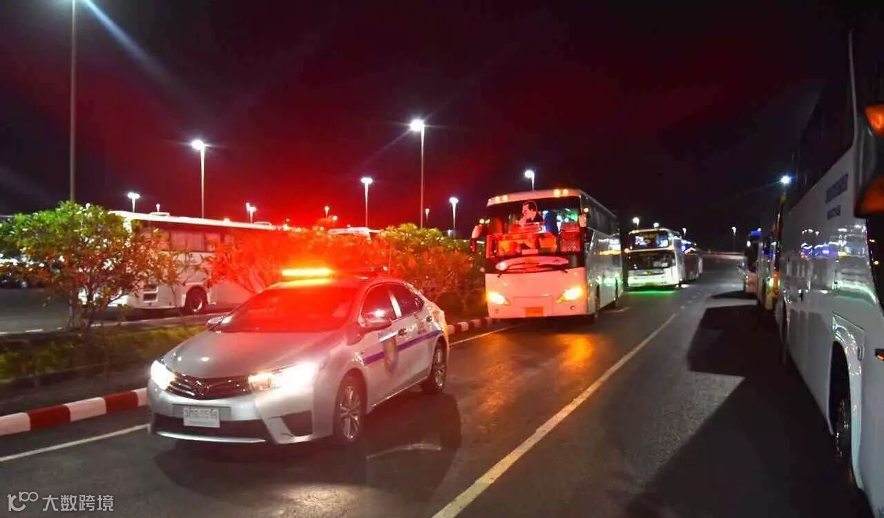 豪华大巴,警车开道