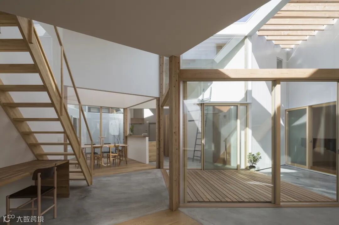 朝向内景的一侧则与几何形态的公园景观相融合,形成互动的空间。