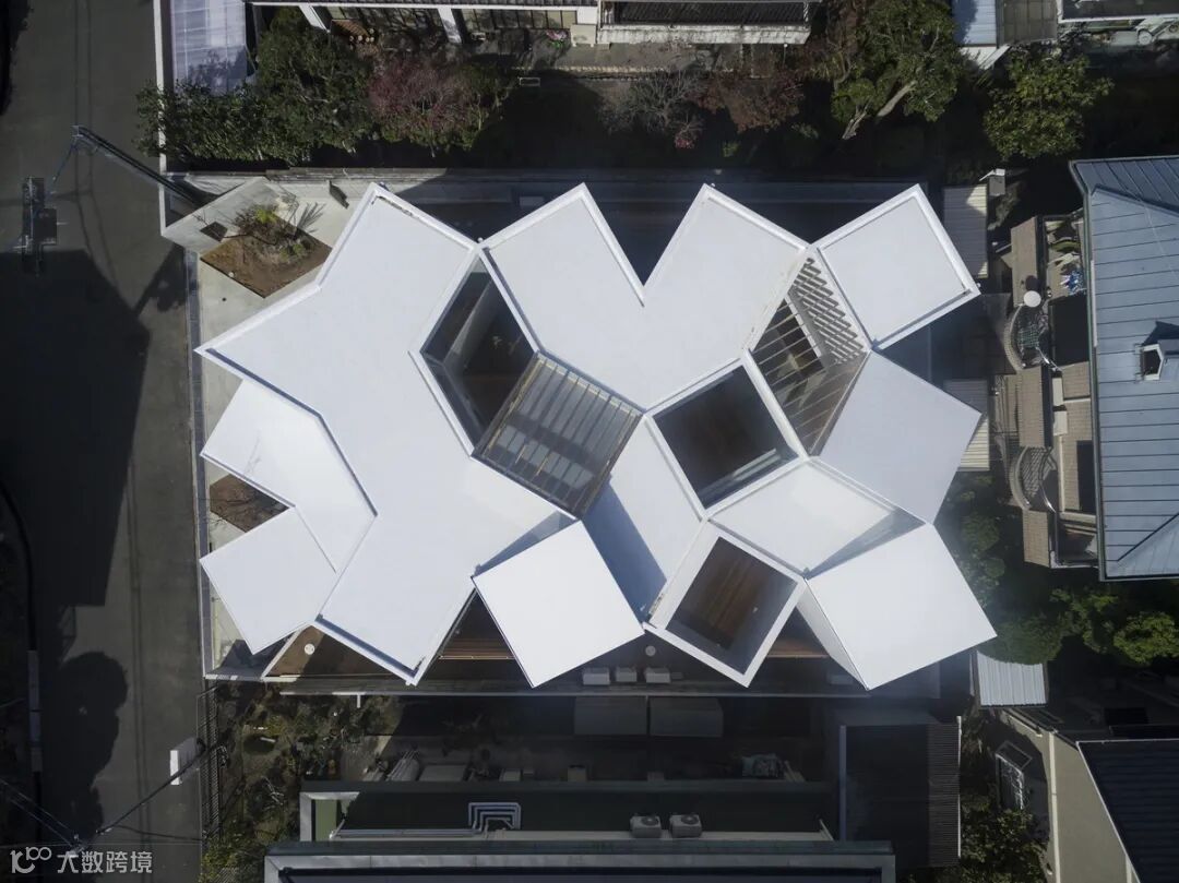 30间木炭桑拿房间旅游新主题,屋顶的几何形状也暗示这里是个娱乐场所。