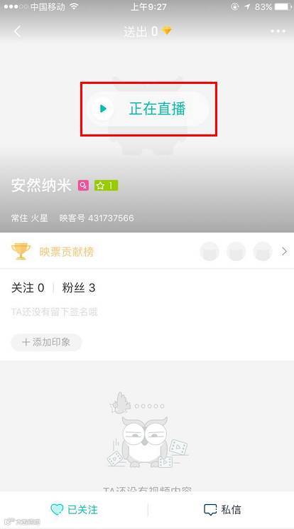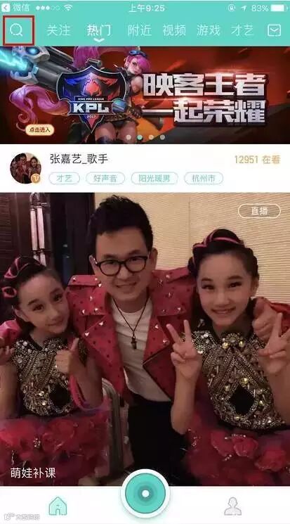 4、进入映客后点击搜索图标,输入安然纳米映客号:431737566,搜索进入安然纳米主页。