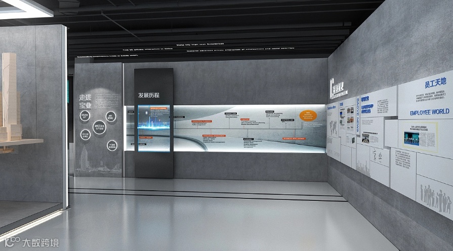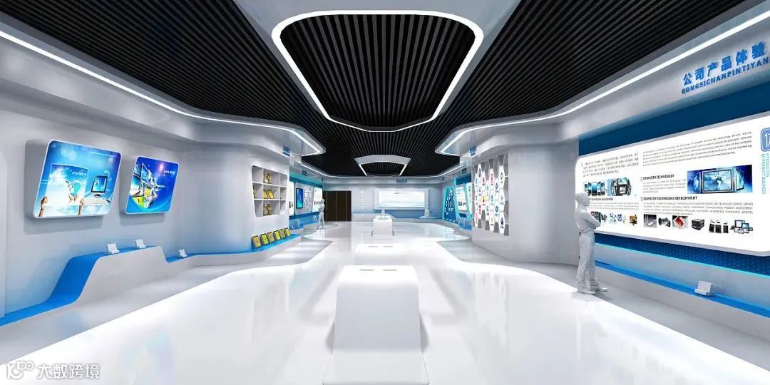 比如遇到不规则的墙面和遮挡视线的圆形顶柱时,可经过创意设计,采用多媒体形式展现,把遮挡视线的圆形柱与整体空间融为一体,借助环形屏幕让视觉效果更加饱满。 要是展厅空间不仅面积小,而且狭窄幽长,可考虑环形墙面与顶部椭圆线条等元素,使其和谐融合,不至于突兀生硬。 对于拐角的墙面可以放置多媒体展示屏幕,这样展厅视觉会更加的震撼,不仅填补了空间还提升了这个空间的功能。