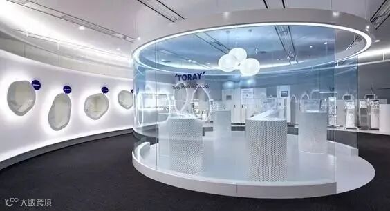 小展厅因为整体的空间比较小,透气性能通常都不会很好,所以在选择设计材料时就可以选择透光性比较好的材料,比如玻璃。利用虚构架或透明材质相邻的空间区别,这样就可以达到有限空间无限延展,相互融合,精致重叠的目的,让参观者拥有柳暗花明又一村的心境。