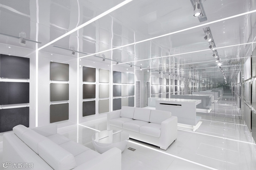主色调选择上,因为小面积展厅空间局限性强,应以明亮的颜色为主。明亮的颜色可以给人宽敞的视觉效果,减轻空间压迫感。但是地面装饰颜色的选择上,要以透明度稍高但纯度稍低的色调为主,以免造成头重脚轻的视觉体验。