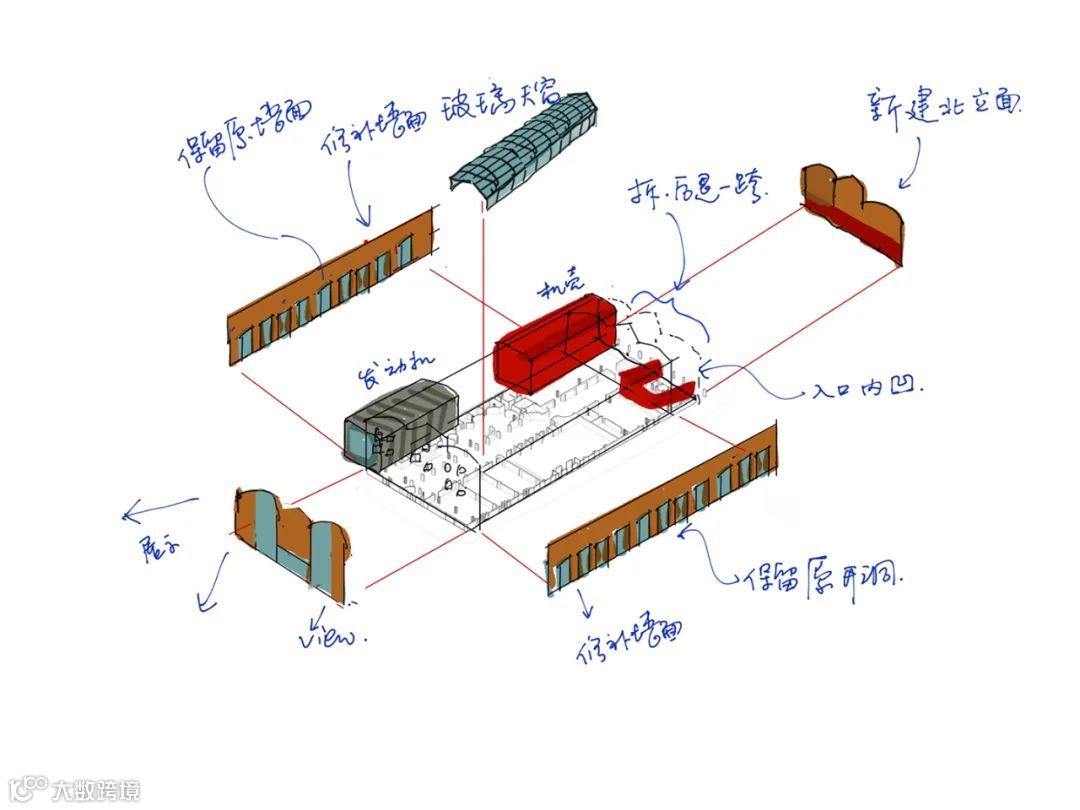 设计师认为,不需要过多的建筑语言去还原原来糖厂工业建筑的旧貌,而是大开大合,只取用朦胧的形式。