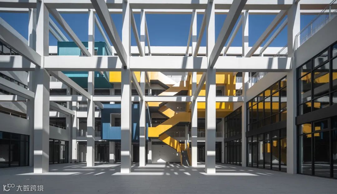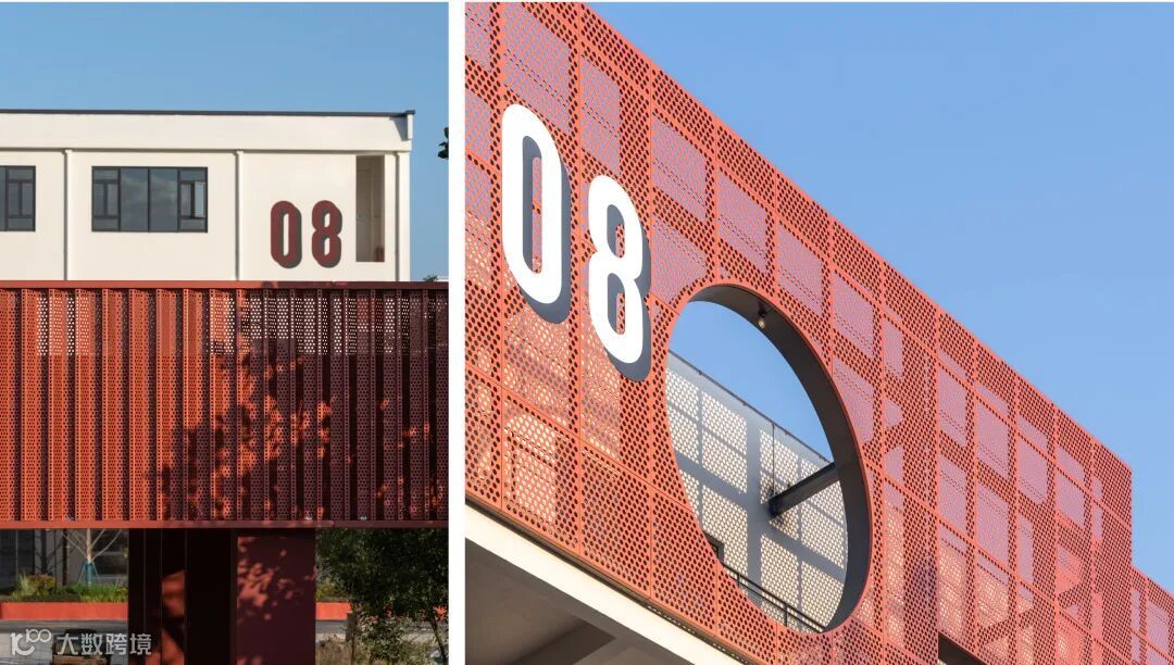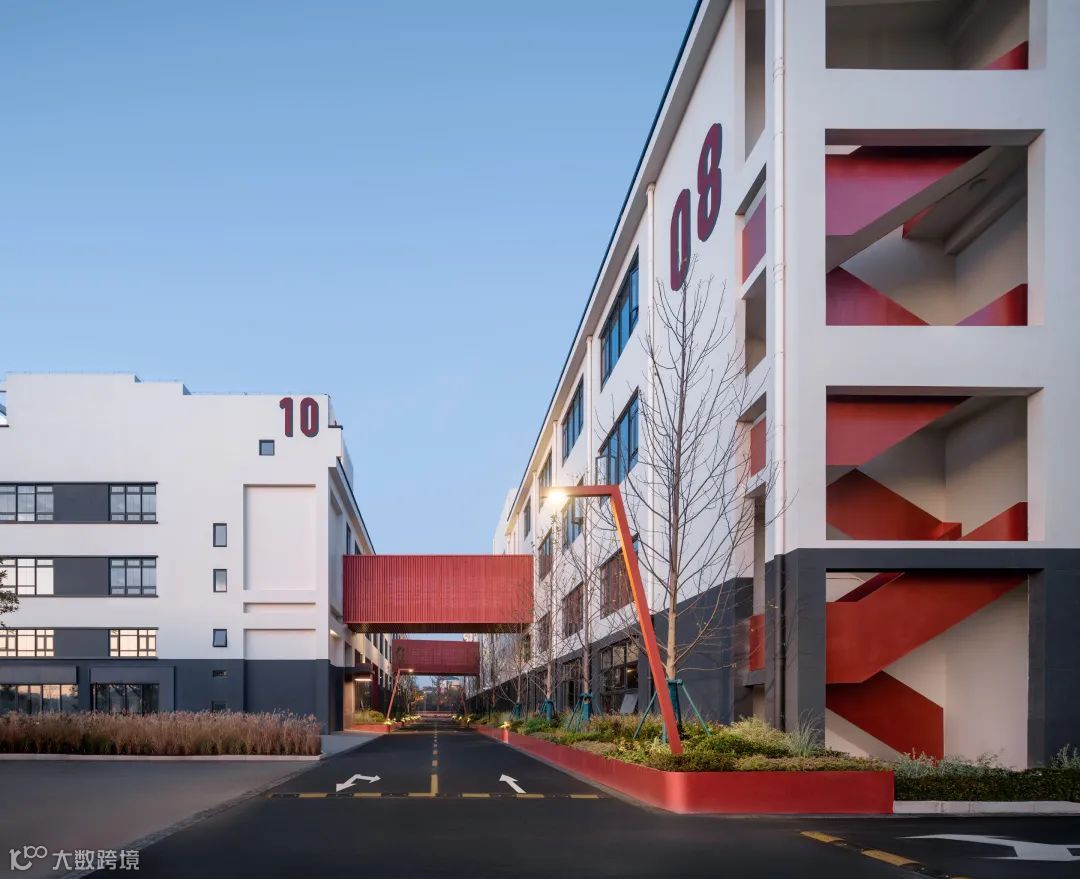 园区沿街部分是大胆奔放的红,园区内部是冷静理智的白,一红一白,一深一浅,互相映照,互相衬托。