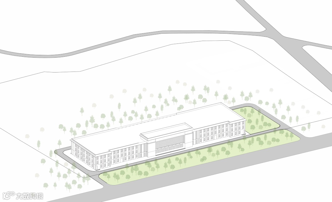 沪闵路的城市沿街界面作为园区对外展示的第一形象面,采用了强烈的构成手法来形成主要视觉形象,将沪闵路广场上的景观和路径倒映在厂房的立面之上