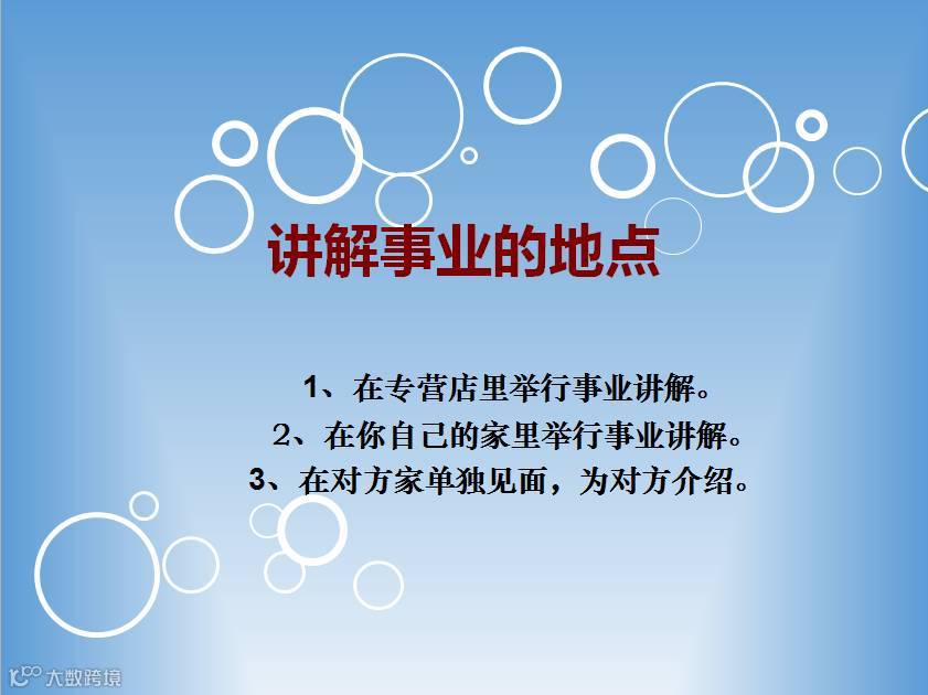 讲解事业机会是行动圈中的第三步,是最高点、最关键的一步。
