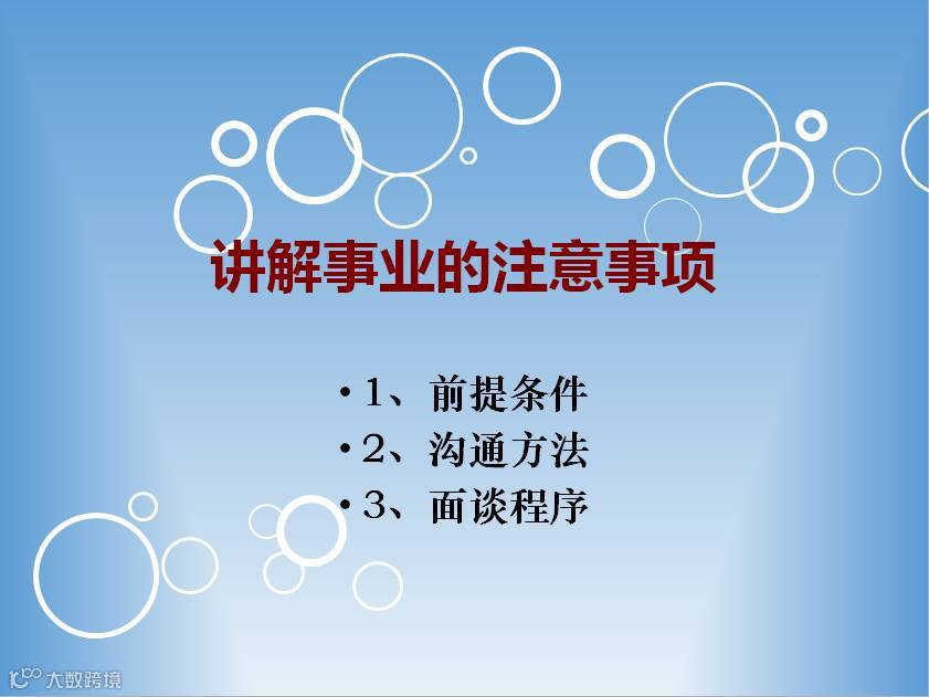 成功八步已经进行了大半,从梦想的渴望到坚定,都化为行动:承诺、列名单、邀约。那么接下来应该怎么做呢?今天让我们继续跟随成功八步课程的脚步,学习第五步—讲解事业。