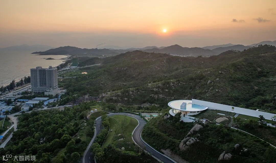 市平海镇双月湾中央公园内。公园在平海古镇和大海之间,距离著名的双月湾海龟保护区不远。公园整体地形北高南低,北侧有丘陵和谷地,向南是大海。项目基地靠近公园中心,是一座独立突出的“半岛形”小山。山的走向从东北向西南,因此北面的视野以山丘和谷地为主,向南则是270度的海景,视线绝佳。公园内的山丘形态柔和,并不奇骏,但有若干巨石,为景观的塑造提供了重要的依托。