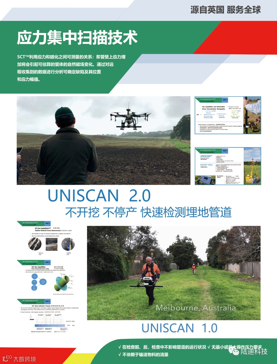 SCT是目前世界唯一一种可以同时映射管道横向位置和埋深,同时又能提供全面的管道检测缺陷修复的检测技术。此外,它的额外可交付成果包括提供管道业主额外要求的信息,例如:套管的位置和管道的皱纹弯曲。