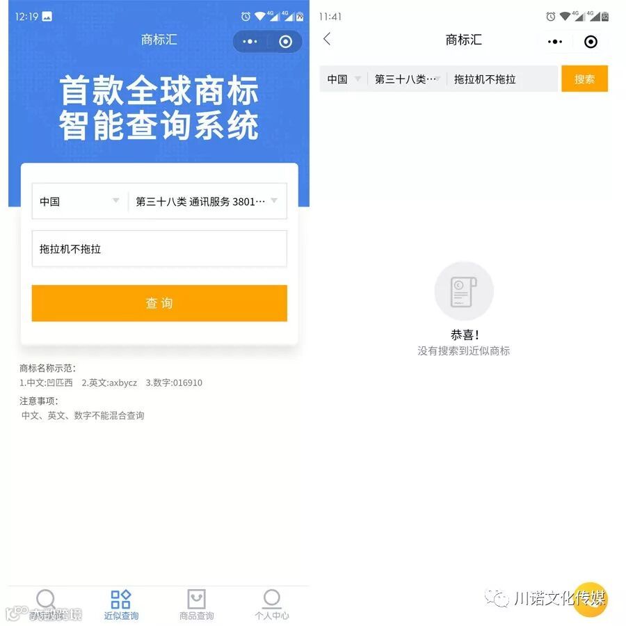 比如你想注册“拖拉机不拖拉”这个商标,那么你就可以通过近似查询查到相关近似的商标。如果商标检索后,没有相同或者近似的,那是可以注册的!